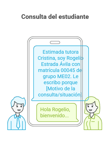 Acción: El estudiante redacta un mensaje por WhatsApp dirigido a su tutora académica, exponiendo con claridad su situación o inquietud.